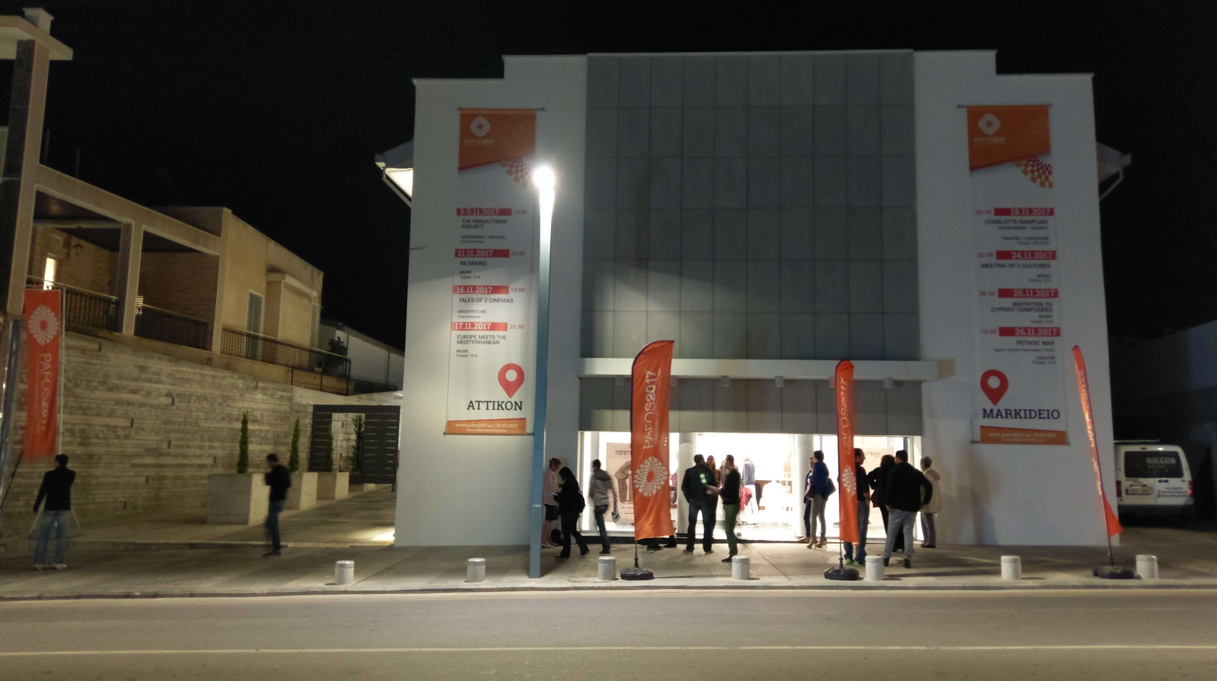 Attikon or later called Othellos used to be a theatre and later a cinema in the heart of Paphos Center. Attikon closed its doors, while operating as a cinema and named Othellos, during the late 2000s due to in part of being a very old building needing of repairs and even renovations. When Paphos was chosen to be the European Capital of Culture in 2017, Attikon was chosen to be renovated and repurposed to an Event Center to be used for the many events that took place in Paphos during its tenure as European Capital of Culture and many more events in years to come.